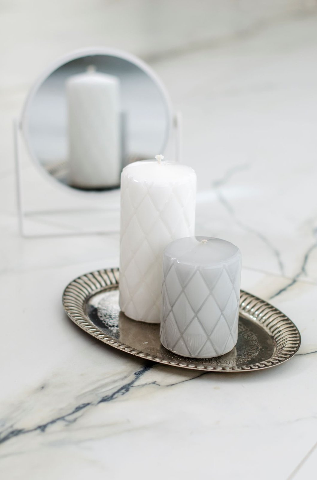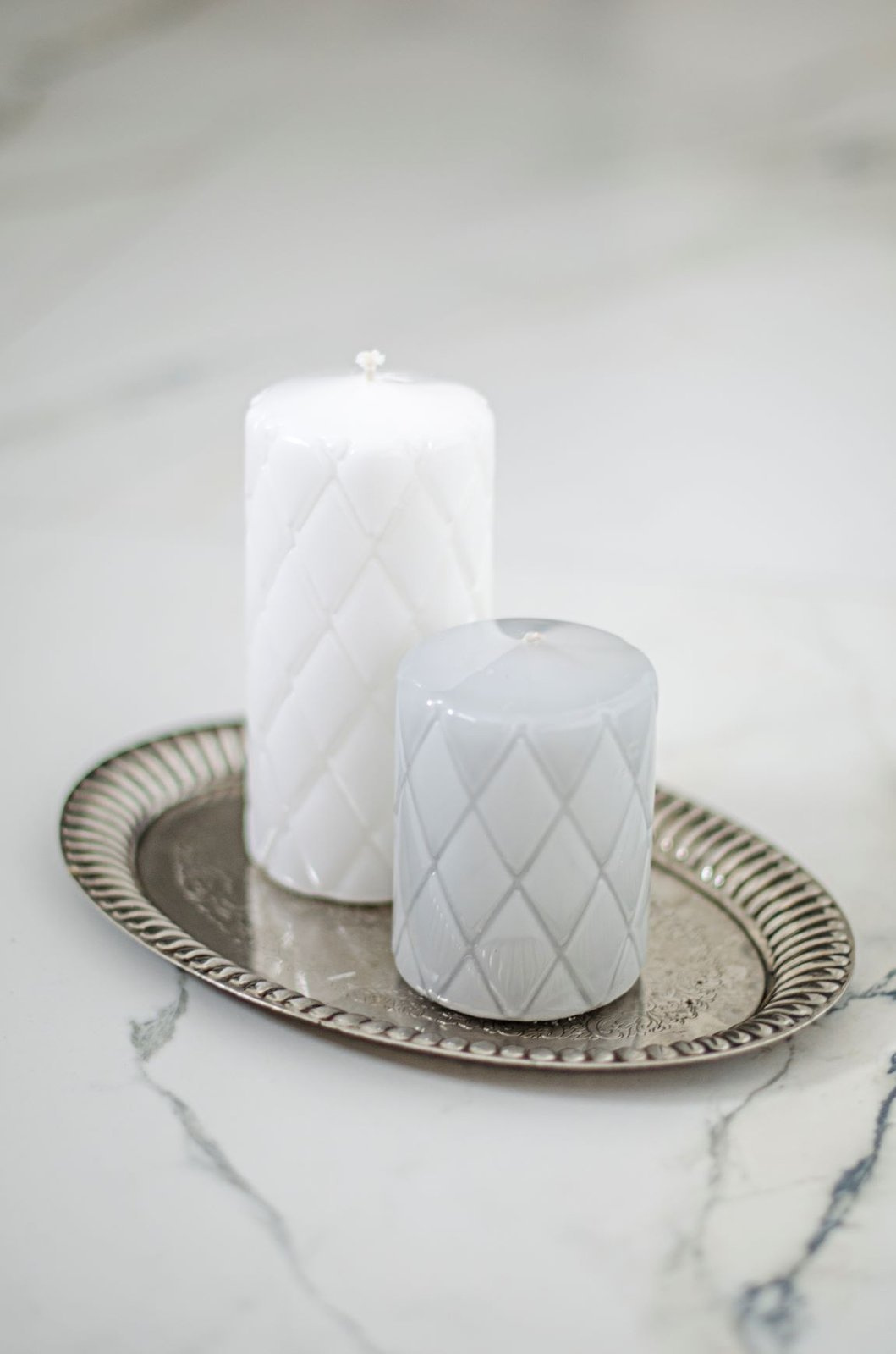 Elegancka biała świeca z niebanalnym wzorem doskonale wpisuje się w wystrój wnętrz zarówno klasycznych jak i nowoczesnych. Klasyczny kształt walca ozdobiony wyżłobieniami na kształt siatki sprawia, że jest nie tylko funkcjonalna, ale i bardzo ozdobna. Delikatny połysk na powierzchni świecy natomiast idealnie podkreśla jej pikowaną formę.