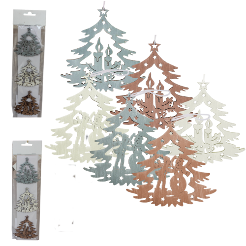 Komplet 3 zawieszek bożonarodzeniowych we wzorze choinki to świetne rozwiązanie dla urozmaicenia estetyki choinki.