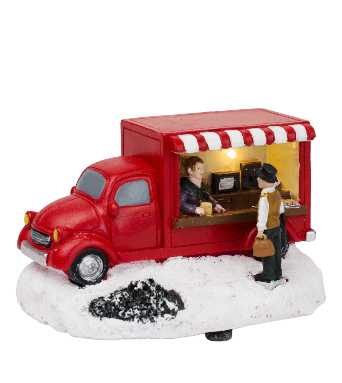 Figurka miniaturowy food truck z pięknie odwzorowanymi szczegółami.