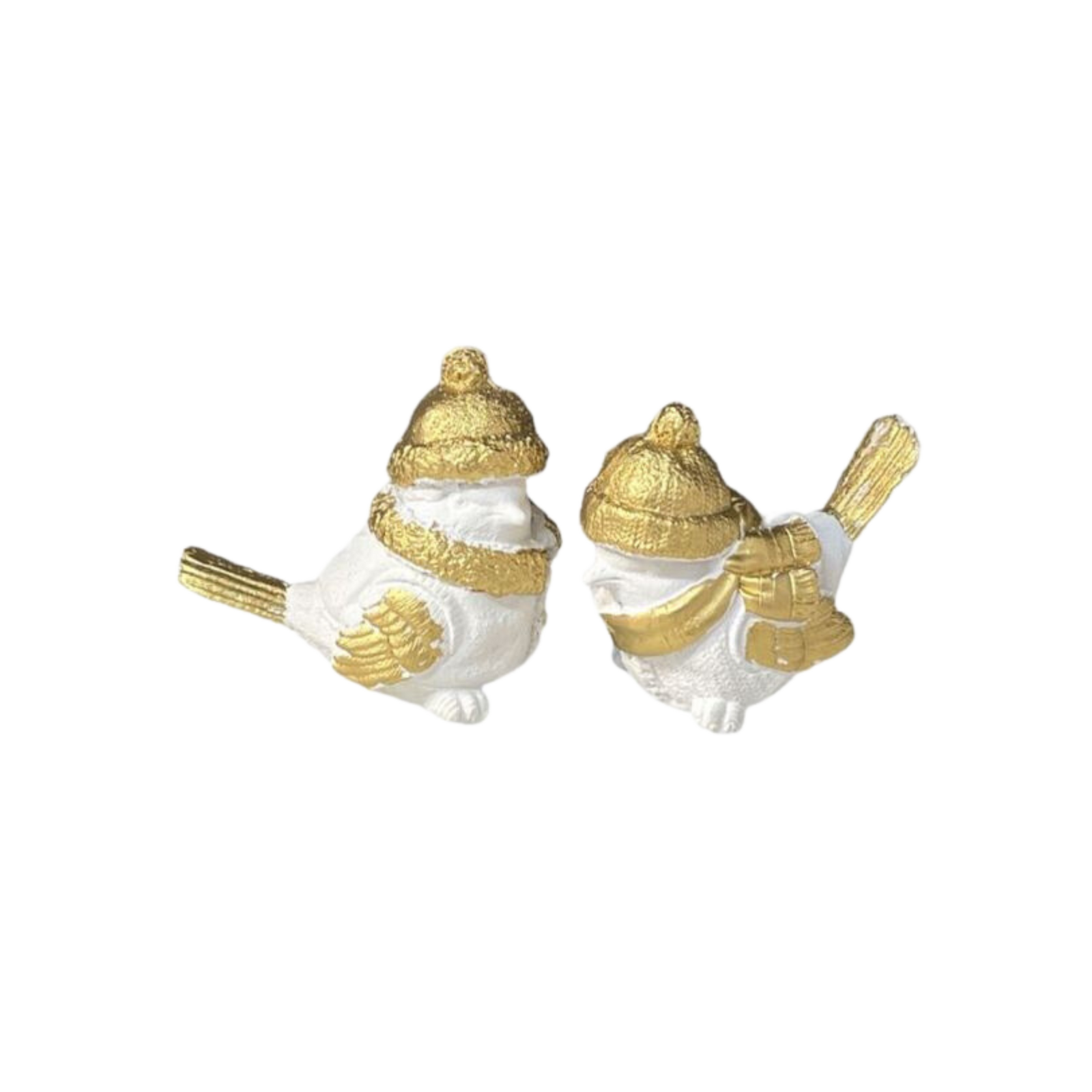 Figurka gipsowa ptaszki biało-złota 11 cm – subtelna i elegancka dekoracja
