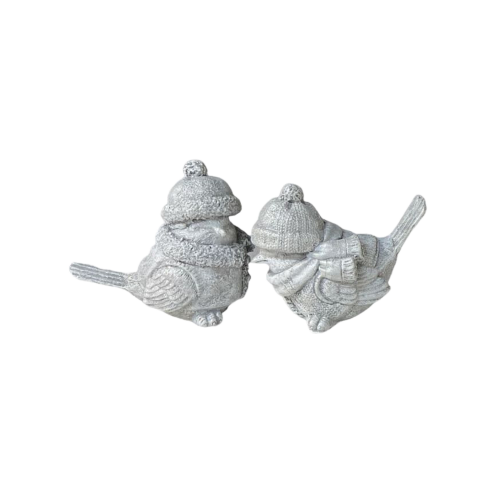 Figurka gipsowa ptaszki szaro-srebrna 11 cm – subtelna i elegancka dekoracja