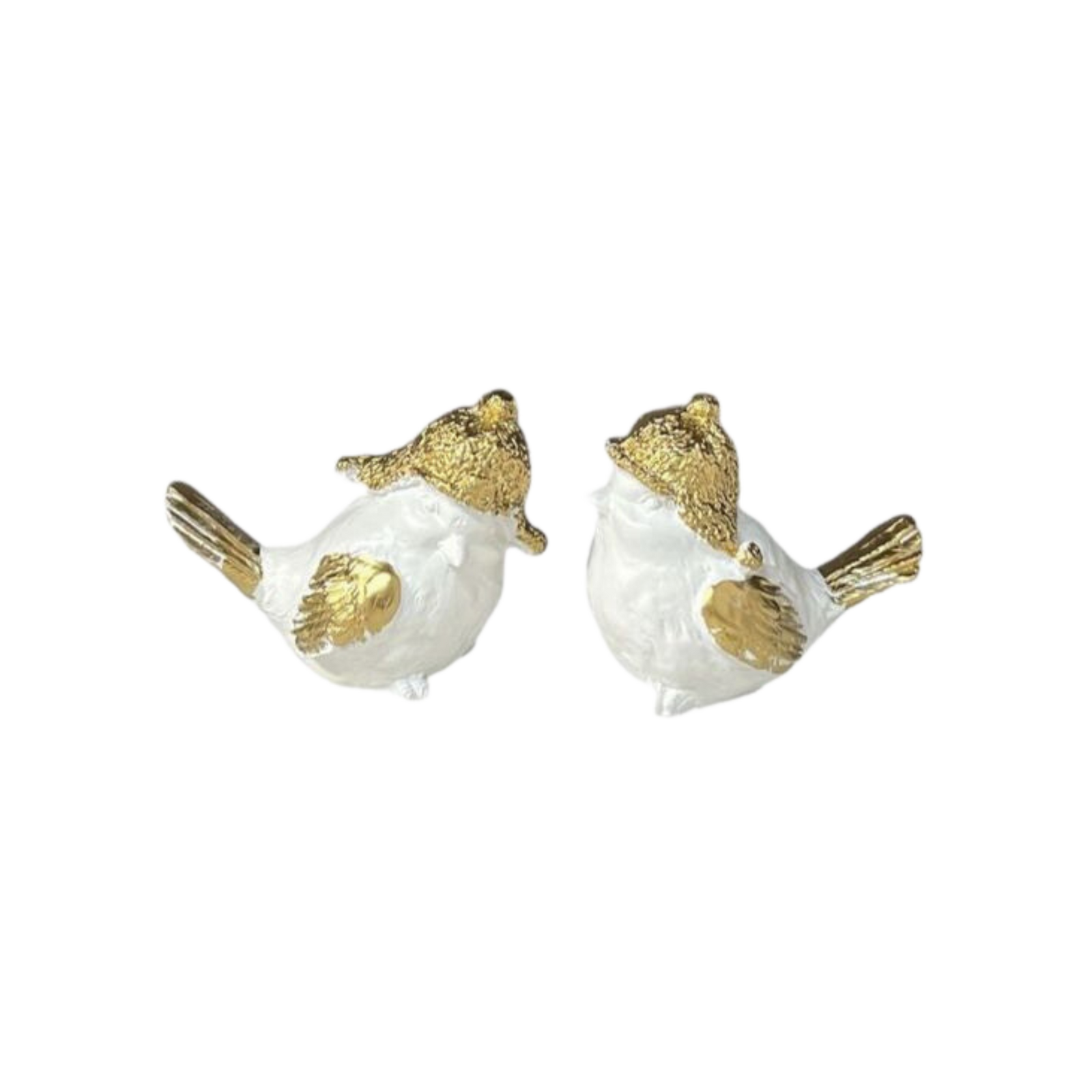 Figurka gipsowa ptaszki S biało-złota 9cm