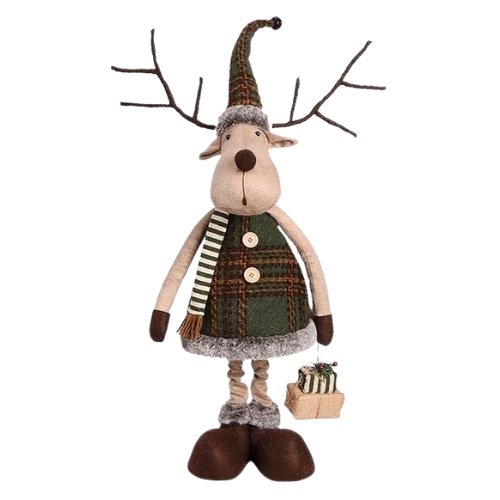 Dekoracja świąteczna stojąca renifer na teleskopowych nogach z prezentem h:105cm