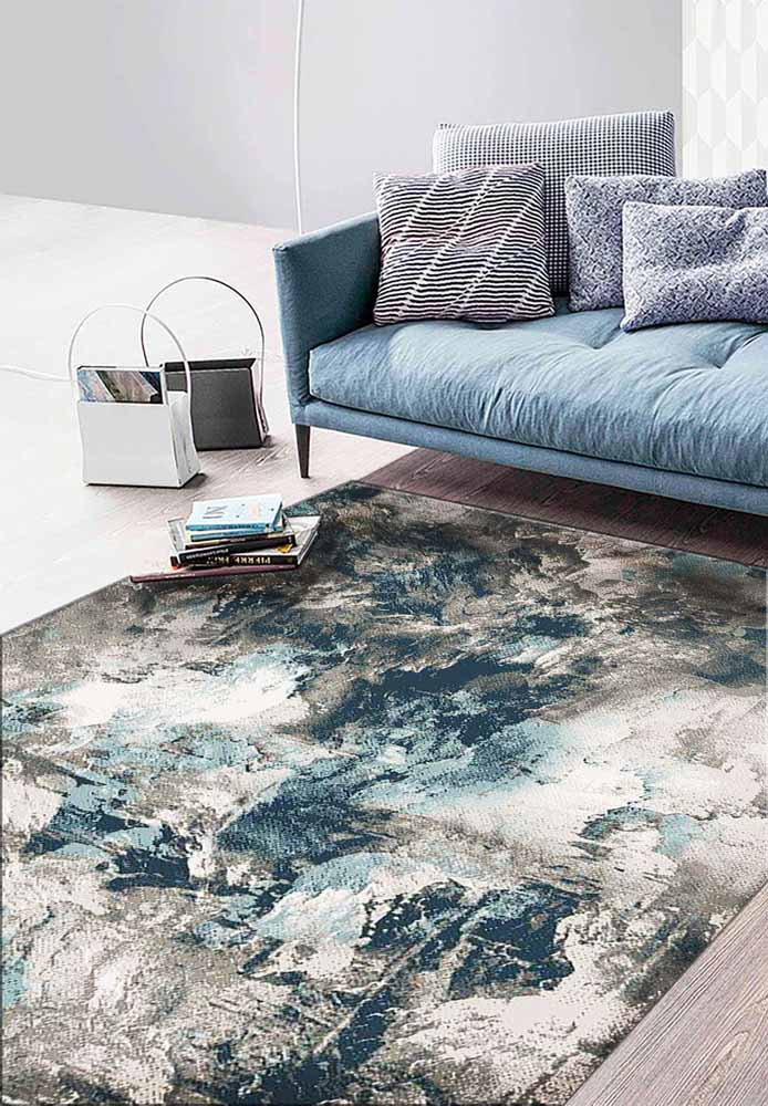 ✅ Nowoczesny wzór abstrakcyjny – efekt artystycznej kompozycji w odcieniach szarości, beżu, błękitu i granatu – idealny do wnętrz w stylu loft, industrial, modern czy minimalistycznym