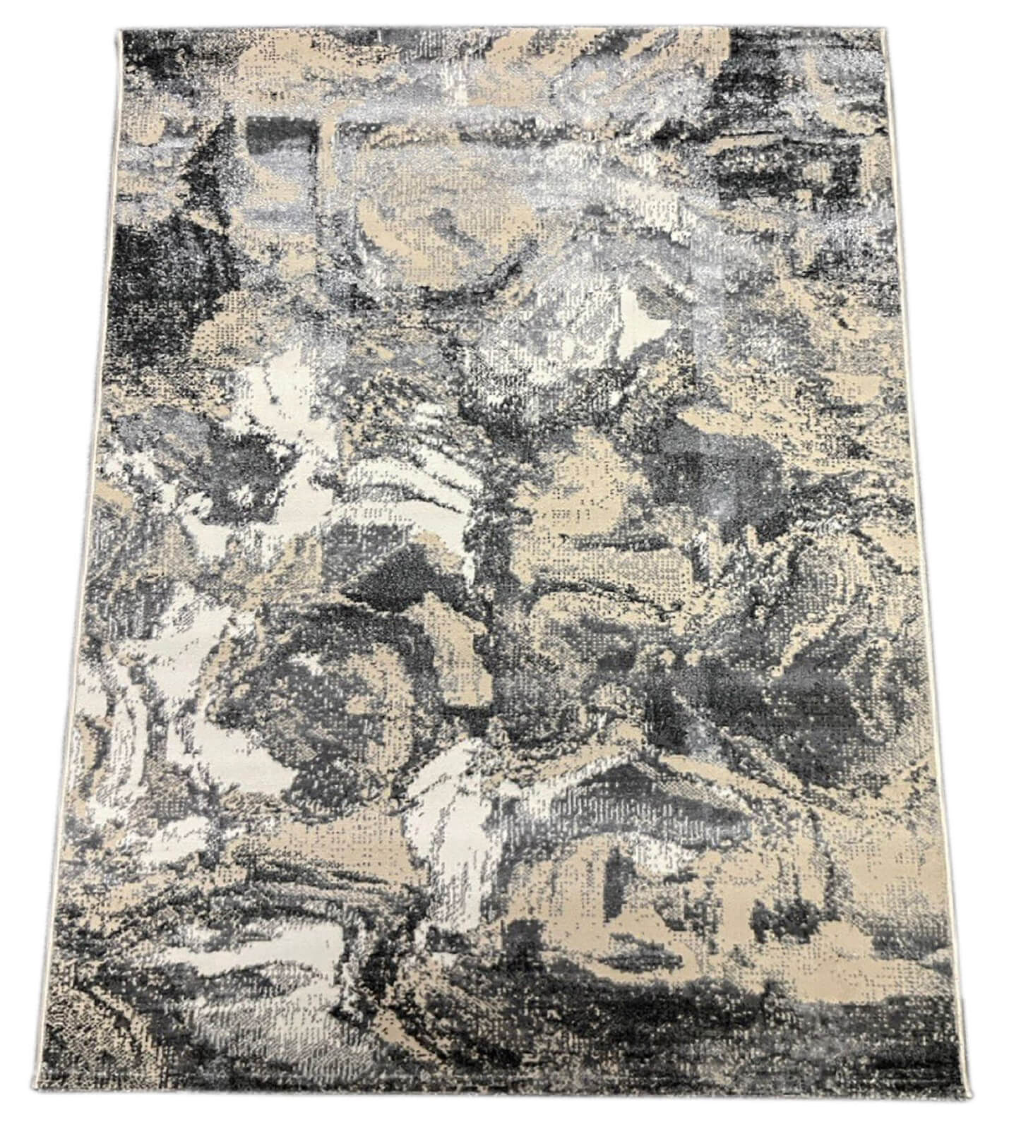 Dywan Riviera wyróżnia się nietuzinkowym wzorem nawiązującym do naturalnych krajobrazów, przypominającym artystyczne pejzaże. Subtelne odcienie szarości, beżu, czerni i zieleni, które przenikają się na jego powierzchni, tworzą niepowtarzalny efekt, który przyciąga wzrok i dodaje elegancji wnętrzom. To idealne rozwiązanie dla osób ceniących sobie wyrazisty, a zarazem harmonijny wygląd.