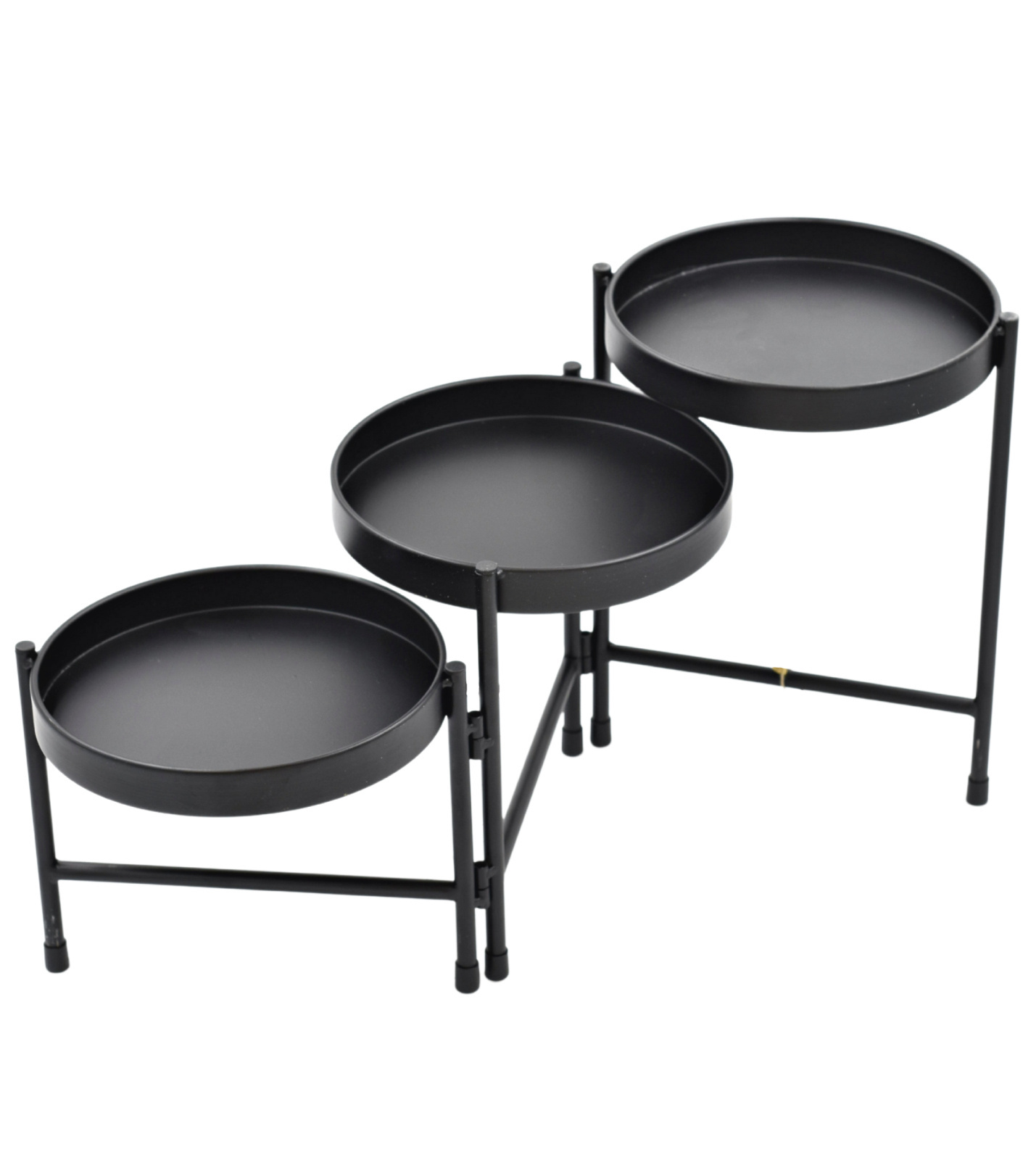 Kwietnik rozkładany z trzema okrągłymi podstawkami. Mały stolik, który umieścisz np. na komodzie.
