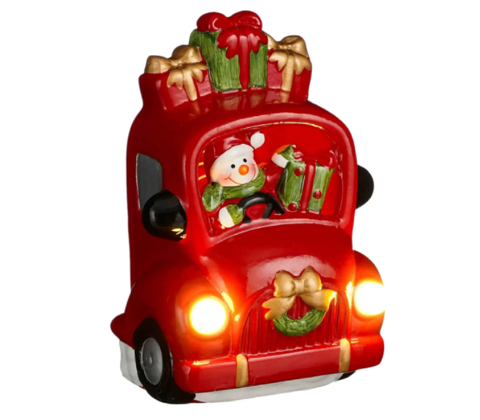 DEKORACJA ŚWIĄTECZNA SAMOCHÓD Z BAŁWANKIEM/MIKOŁAJEM LED