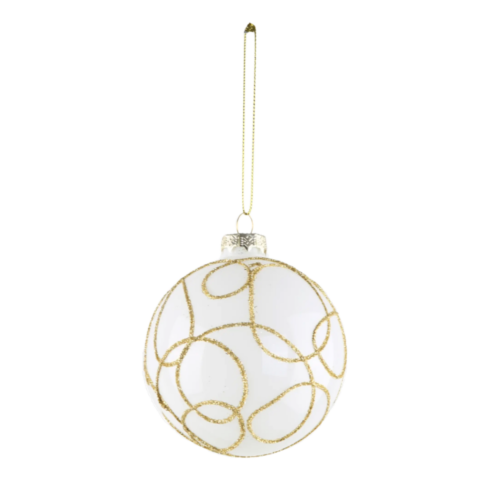 • Kolorystyka: Biała bombka pokryta złotym brokatem, który tworzy piękne, błyszczące wzorki, przyciągając wzrok i dodając magii każdemu świątecznemu drzewku.