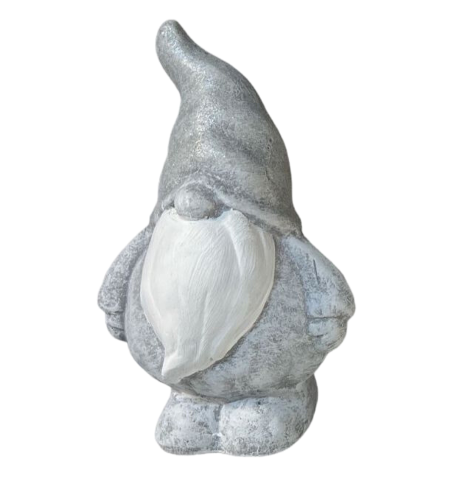 - Design: Figurka przedstawia uroczego krasnala z dużą, srebrną brodą, szarym spiczastym kapeluszem i zaokrąglonymi kształtami, które nadają jej wyjątkowego charakteru. Z prostym, lecz niezwykle uroczym wyglądem idealnie wkomponuje się w każdy styl aranżacji ogrodowej czy domowej.