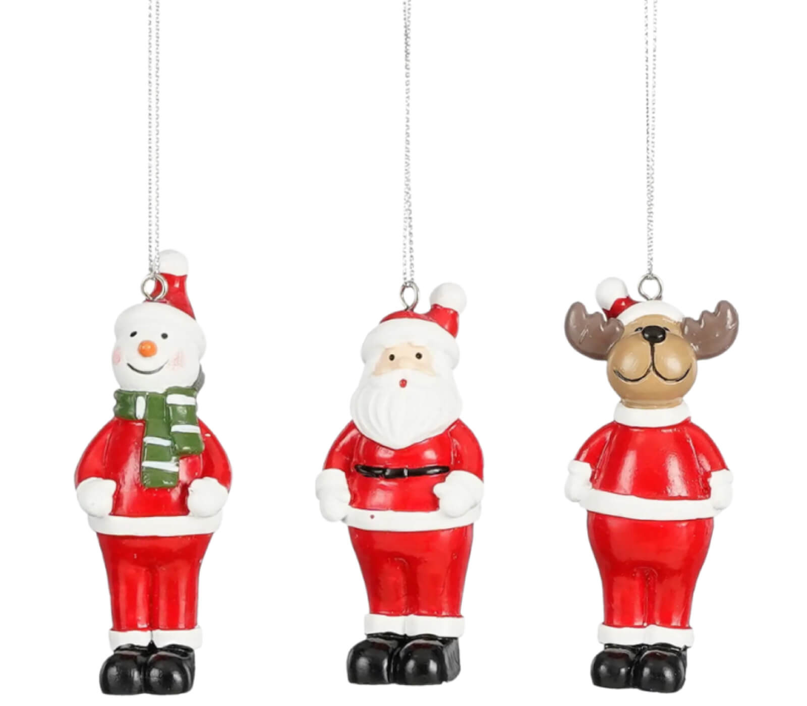 • Zawieszki: Każda z figur jest ubrana w charakterystyczny czerwony strój, co nadaje im wyjątkowego świątecznego uroku.