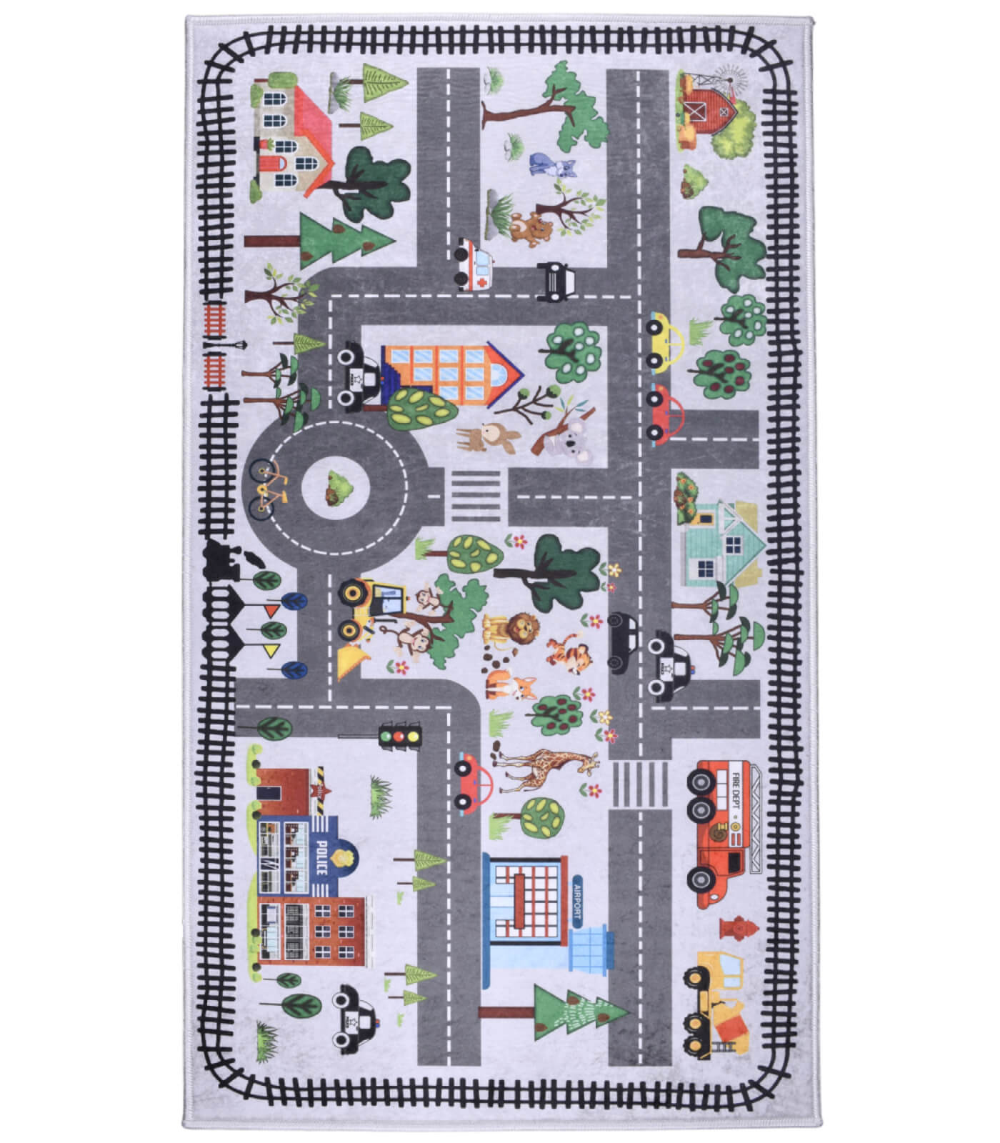 Wprowadź swojego malucha do świata zabawy i edukacji dzięki wyjątkowemu dywanowi z motywem miasteczka. Ten kolorowy i starannie zaprojektowany dywan to idealne miejsce do rozwijania wyobraźni, nauki oraz zabawy z pojazdami, zwierzętami i różnymi elementami miejskiego życia.