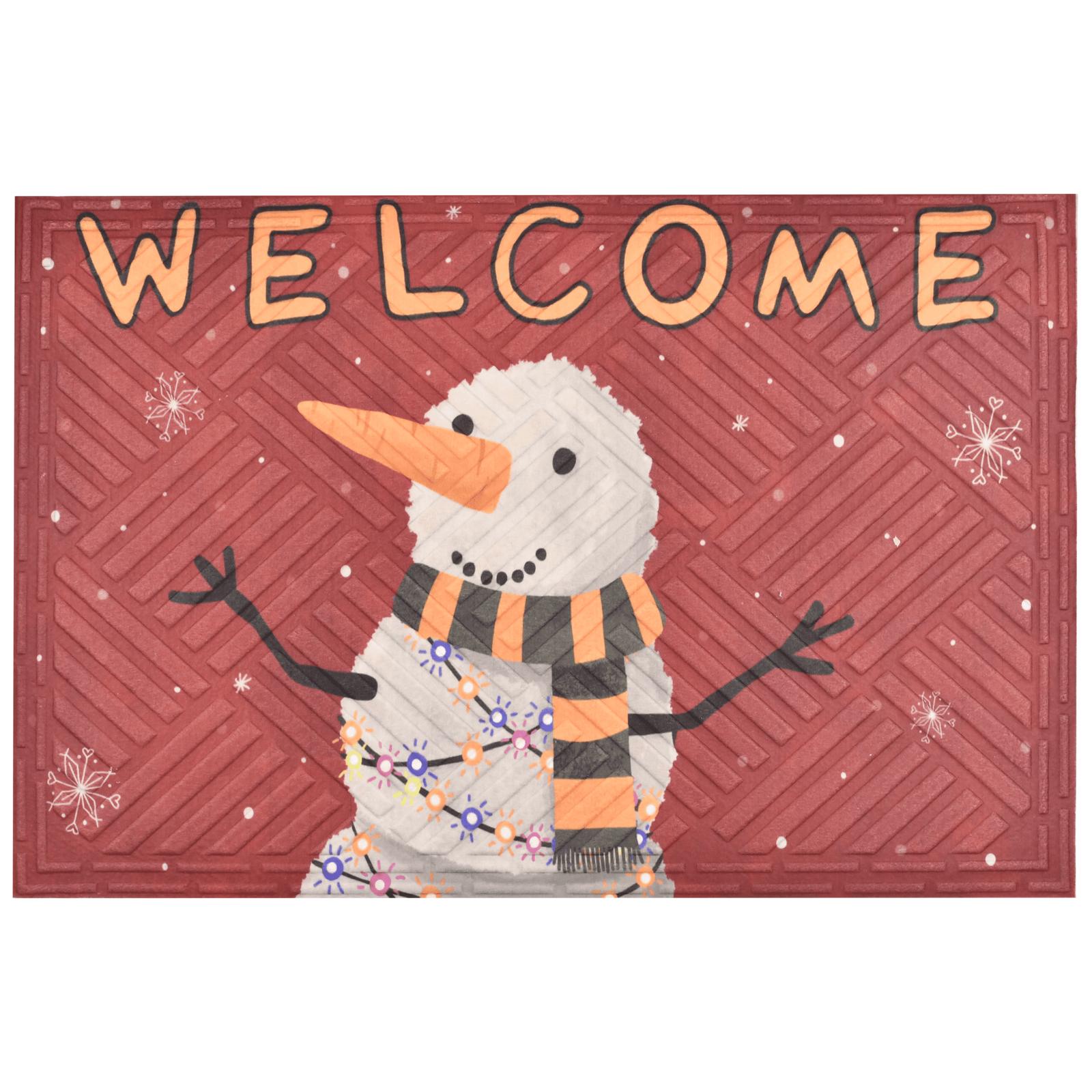 Czerwona wycieraczka z bałwanem "Welcome" - Idealna na świąteczne powitanie!