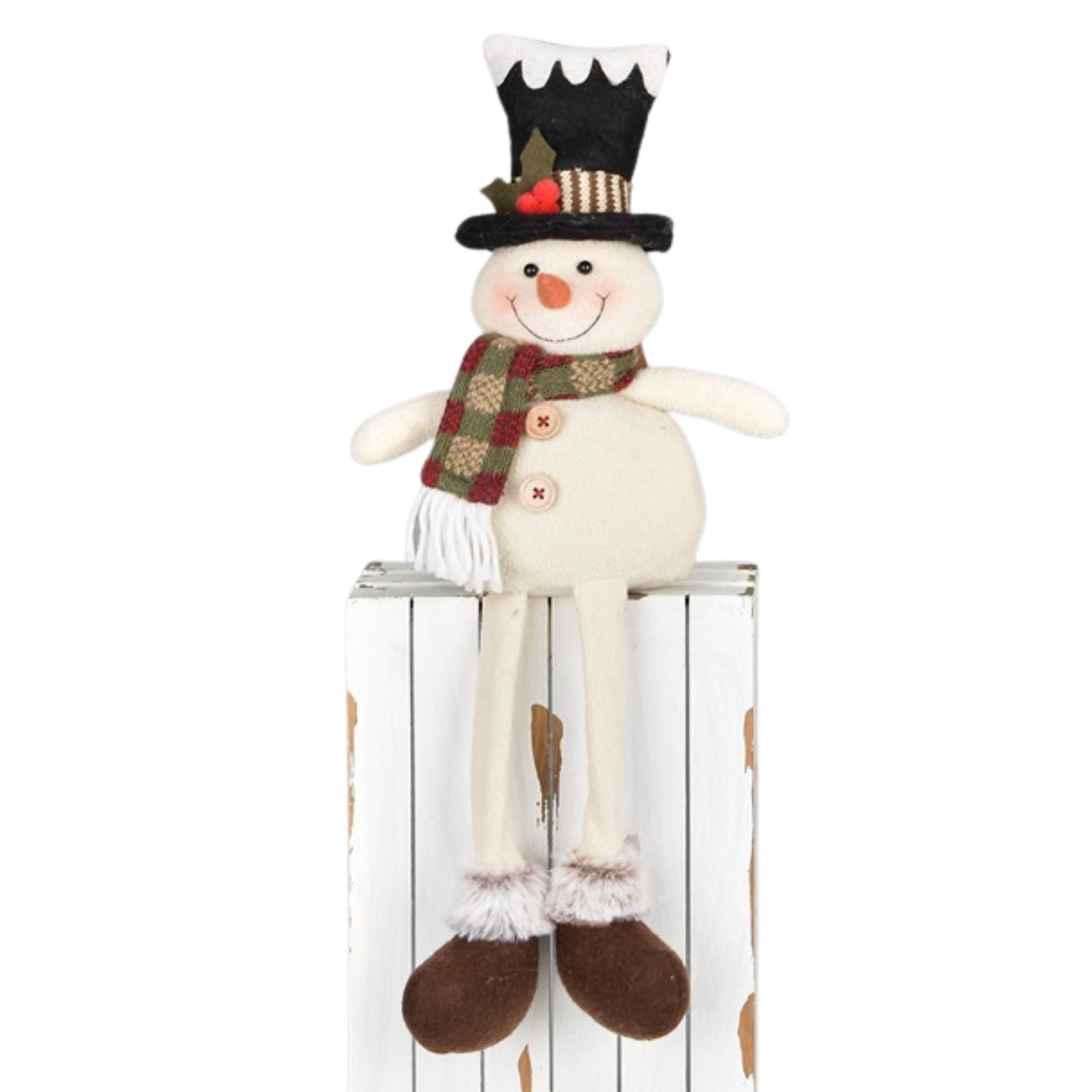 Dekoracja świąteczna bałwan w szaliku i kapeluszu siedzący 58 cm