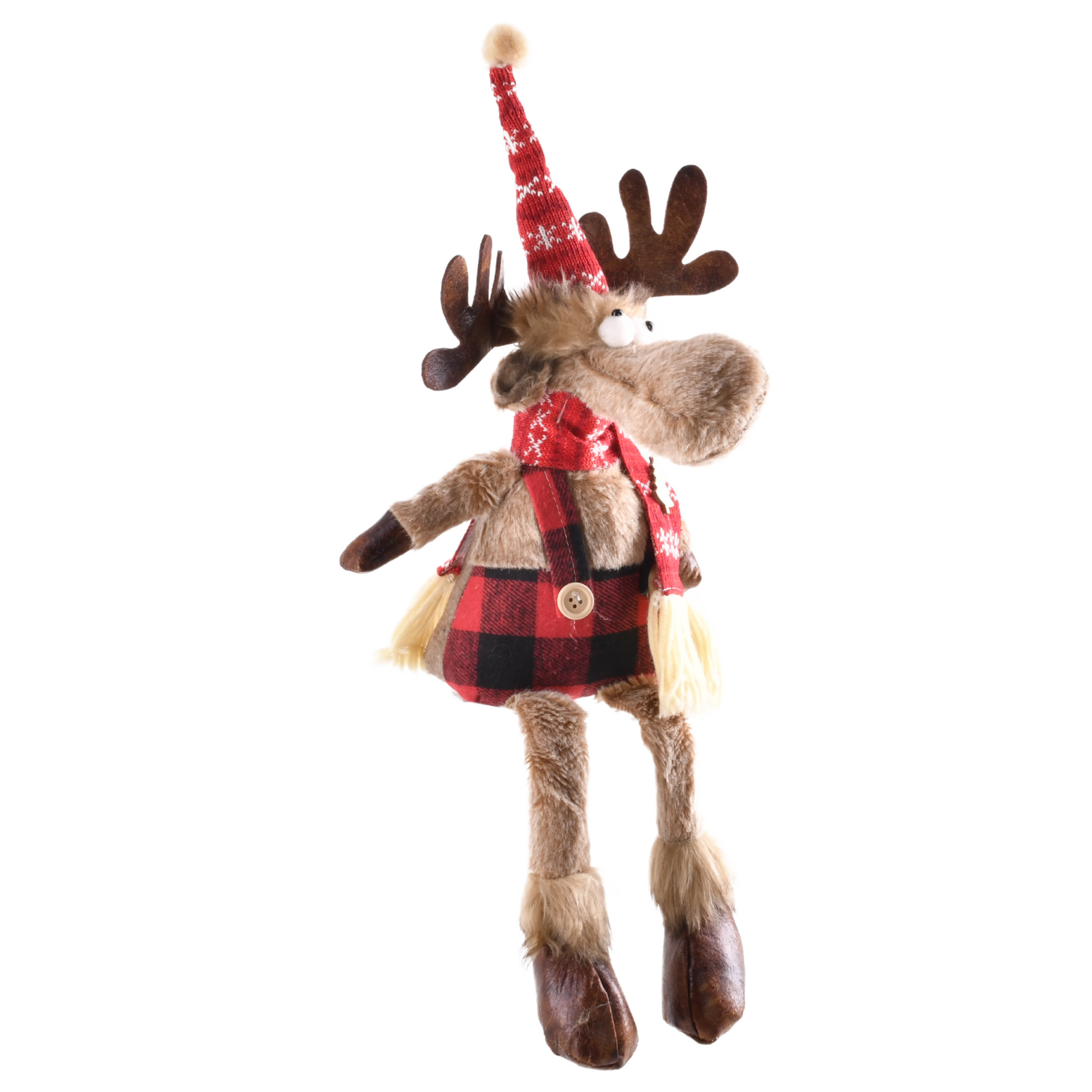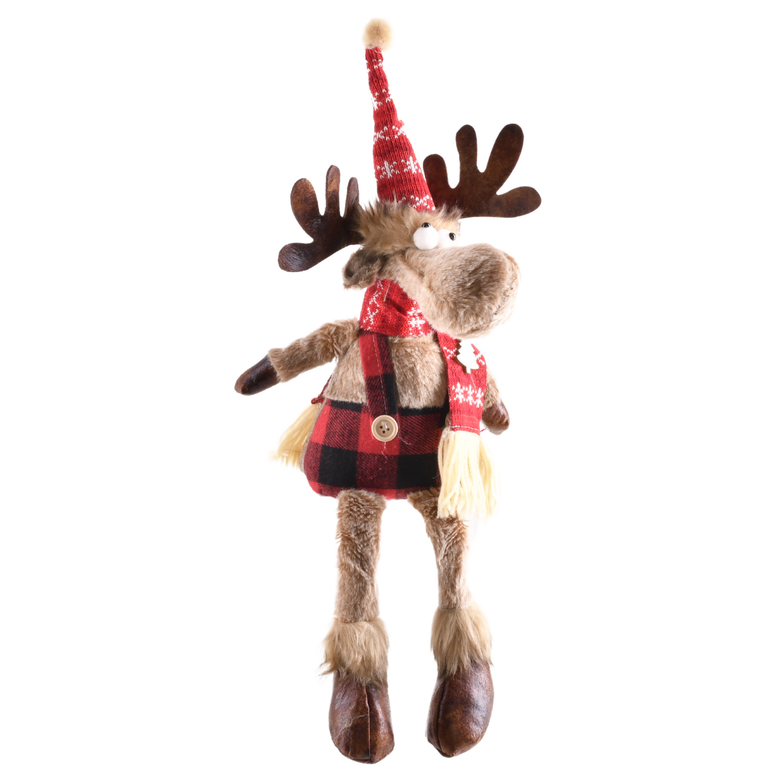 Dekoracja świąteczna renifer z czerwonym szalikiem siedzący 65 cm