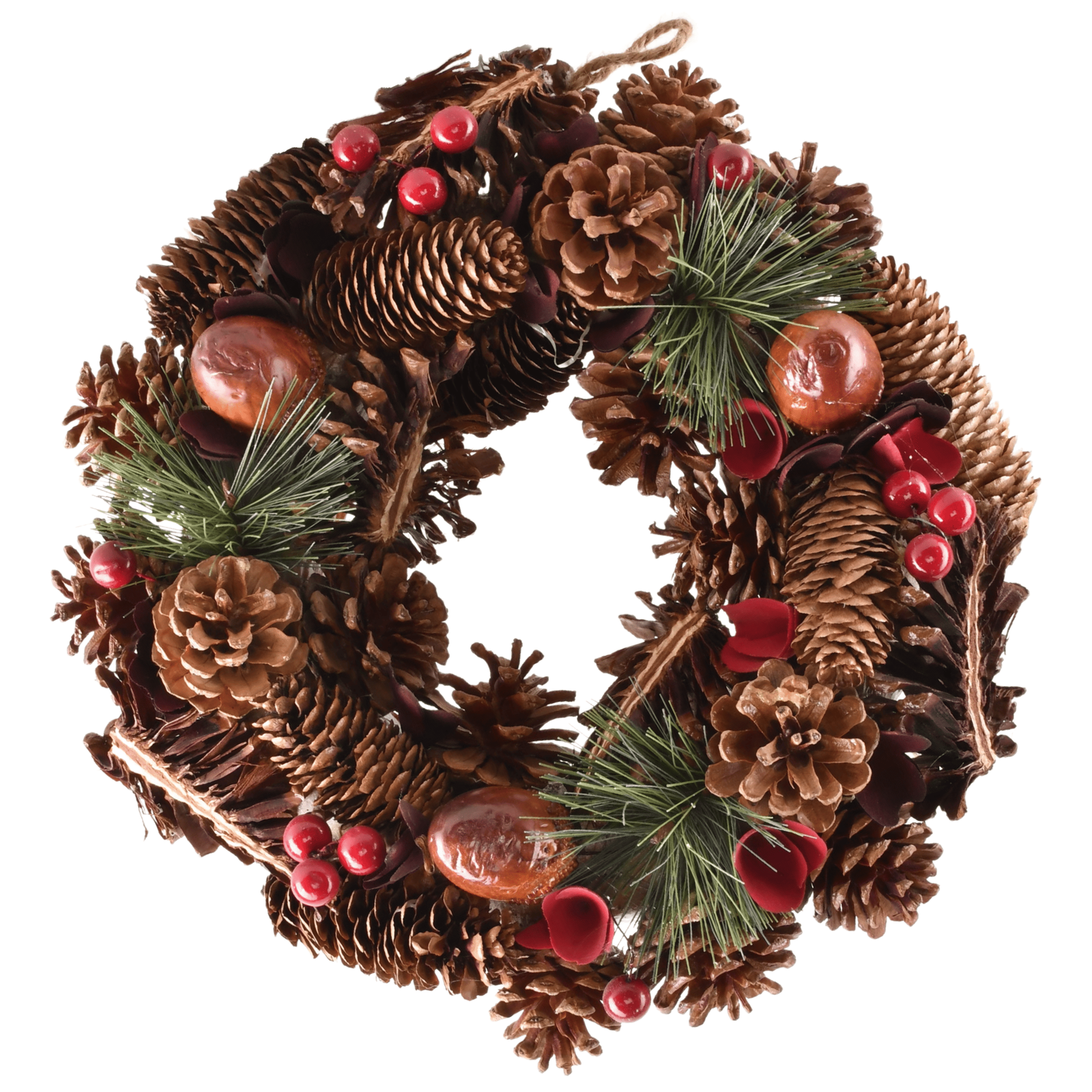 Świąteczny wianek dekoracyjny w czerwono- brązowej kolorystyce