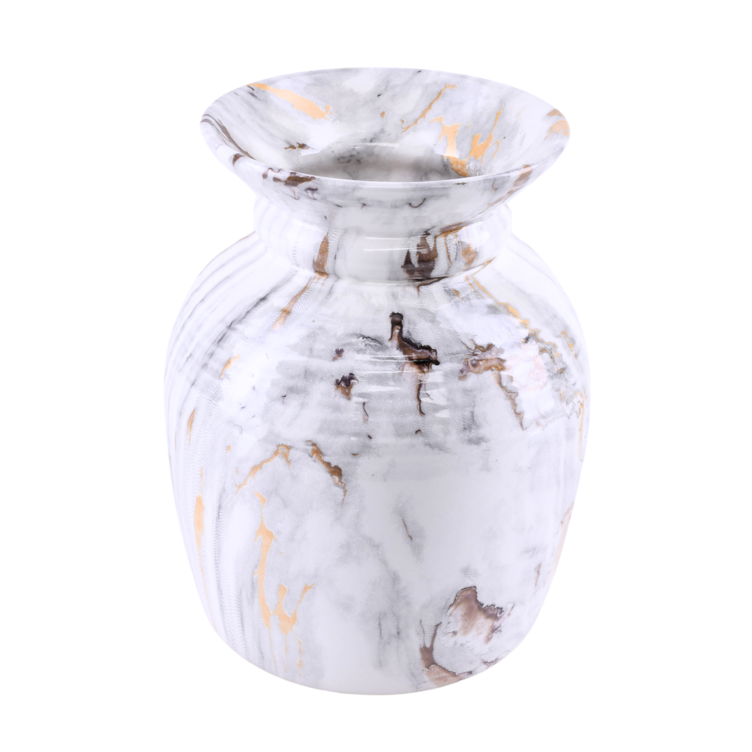 Dodaj odrobinę luksusu do swojego wnętrza dzięki temu wyjątkowemu wazonowi dekoracyjnemu z efektem marmuru. To połączenie klasycznego designu z nowoczesnym wykończeniem sprawia, że wazon staje się nie tylko praktycznym elementem wyposażenia, ale również prawdziwą ozdobą Twojego domu.