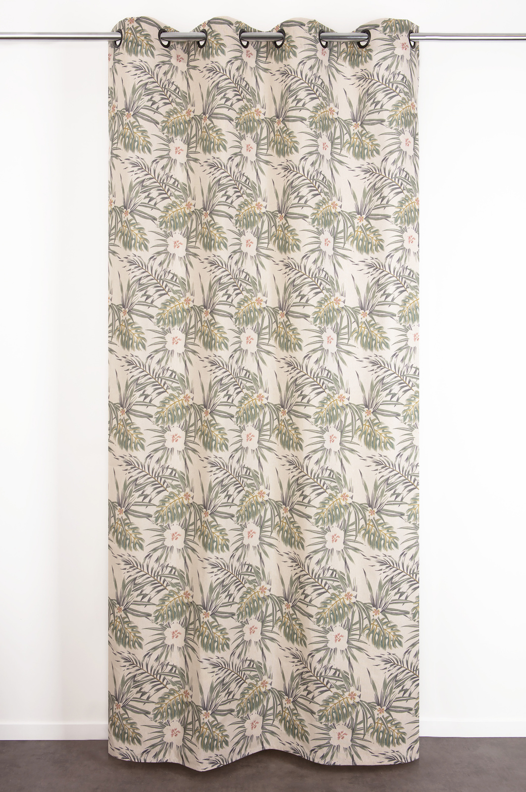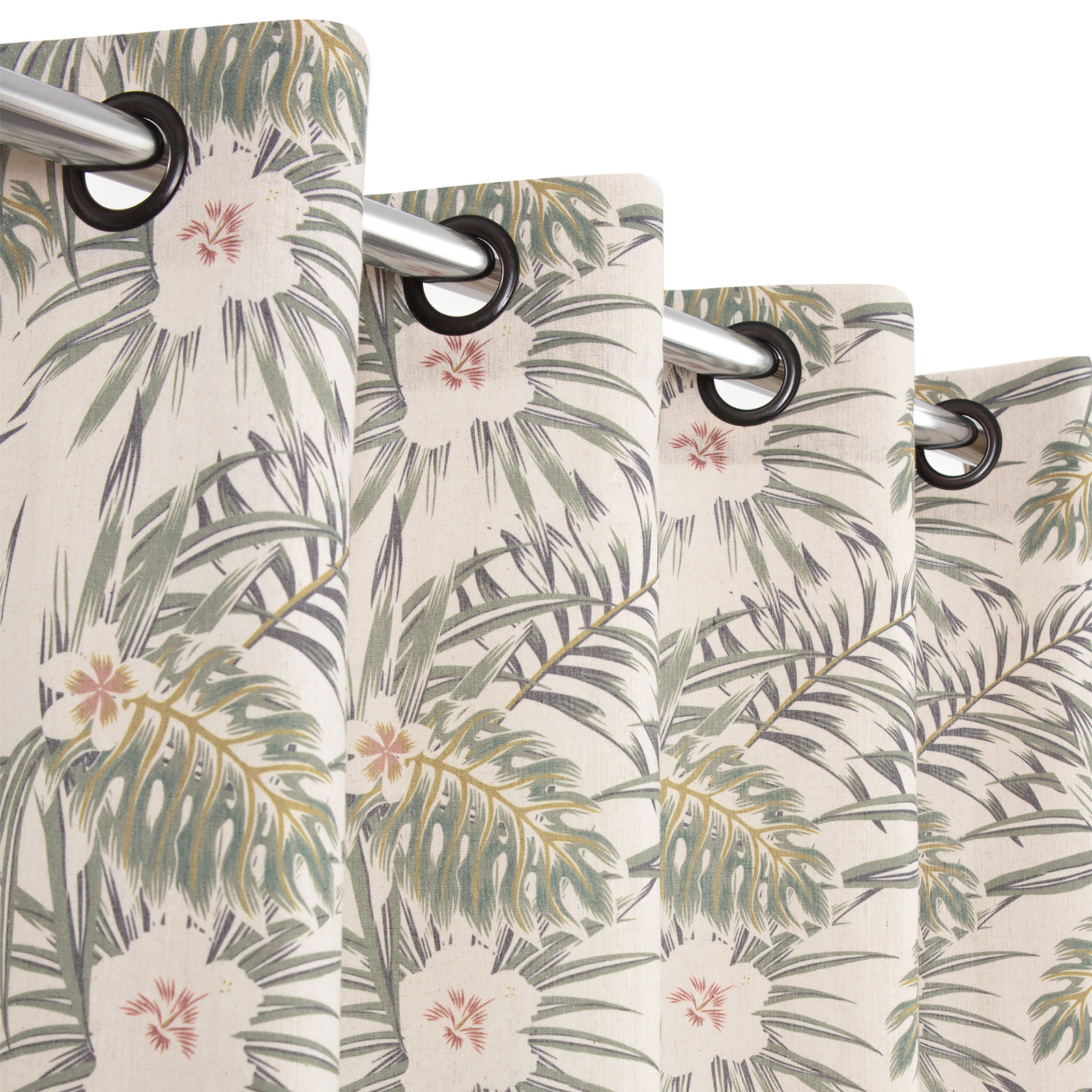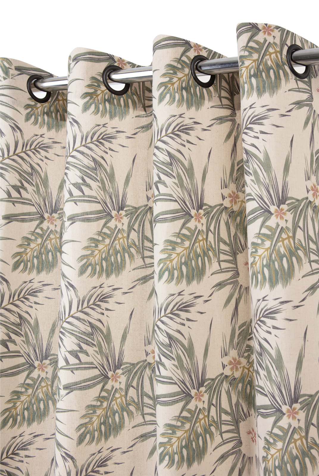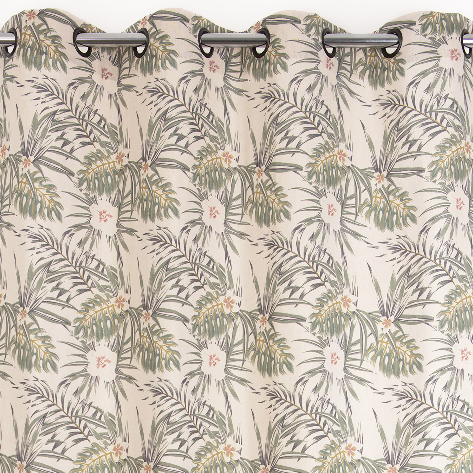 • Wzór: Kwiaty i liście – inspirowane naturą, w odcieniach zieleni i beżu, nadają zasłonie wyjątkowego uroku.