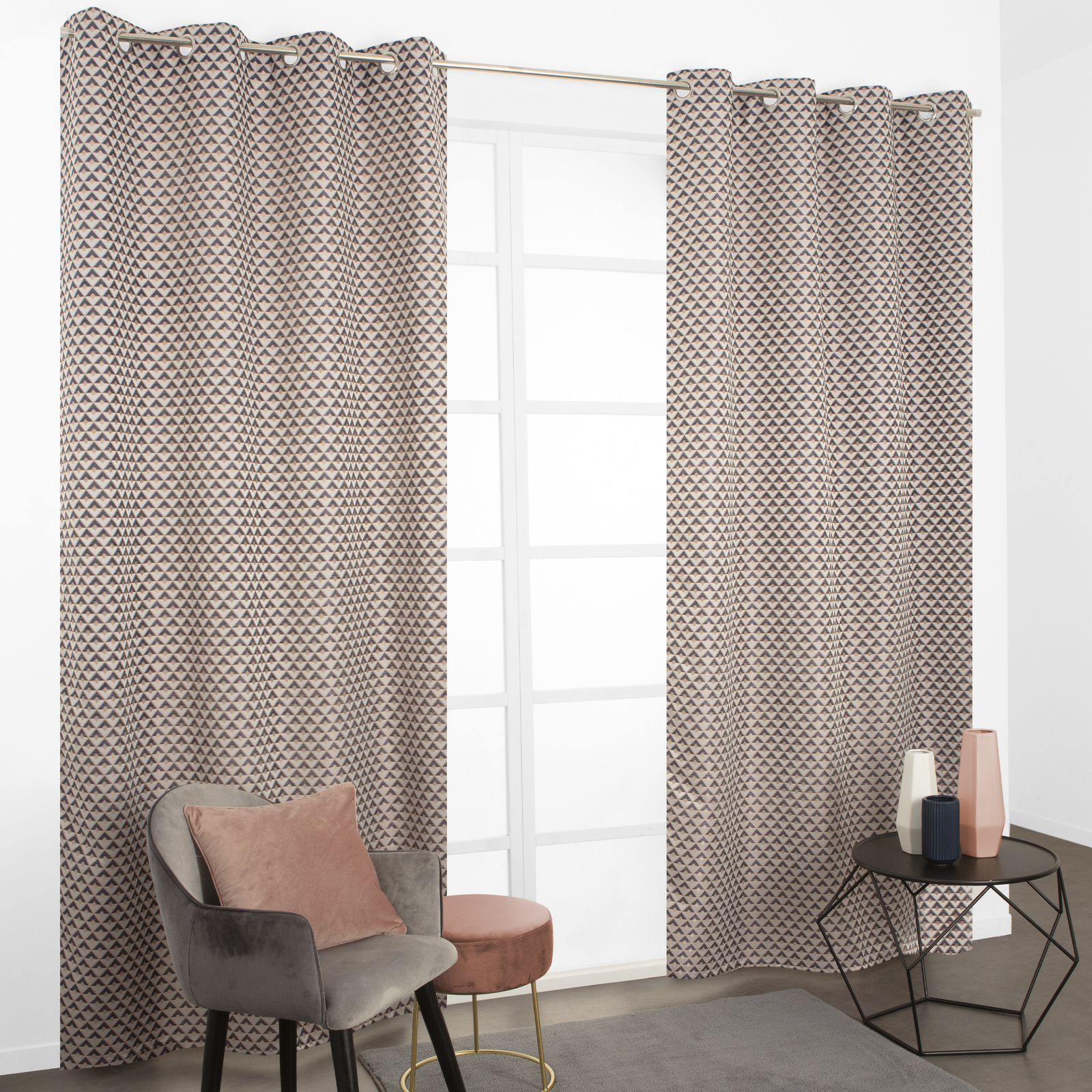 Zasłona KAPRIA na przelotkach 140 x 260 cm – Różowo-Niebieska z Geometrycznym Wzorem w Trójkąty