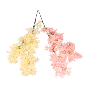 Przenieś do swojego wnętrza magię wiosennego ogrodu dzięki sztucznej gałązce kwitnącej wiśni o imponującej długości 97 cm. Subtelne, drobne kwiaty rozmieszczone wzdłuż smukłej gałązki tworzą lekki, romantyczny efekt, idealny do dekoracji wazonów, kompozycji ślubnych i aranżacji sezonowych. To wyjątkowy akcent natury – elegancki, trwały i bezobsługowy.