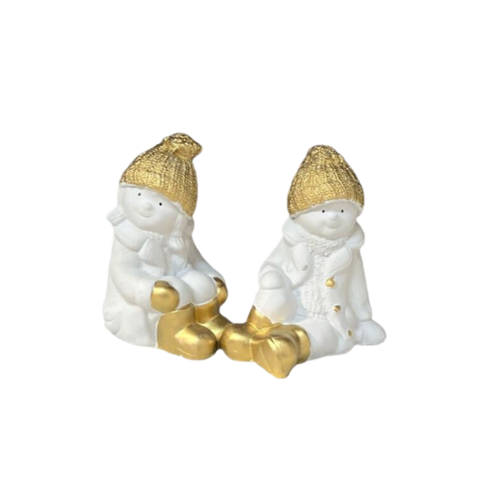 Figurka betonowa dzieci siedzące biało-złota 13 cm – elegancka ozdoba świąteczna