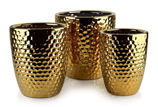 Dzięki różnym wielkościom zestaw jest niezwykle praktyczny – sprawdzi się zarówno do okazałych roślin, jak i do średnich aranżacji. Ustawione razem stworzą spójną, efektowną dekorację.