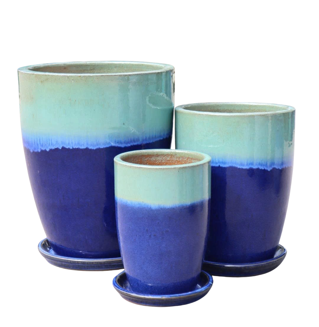 Podkreśl piękno swoich roślin wyjątkowym zestawem TOLEDO Falling Green&Blue – to ręcznie szkliwione ceramiczne donice z połyskiem w zielono-niebieskim odcieniu, które wprowadzą klasę i elegancję do każdego wnętrza i ogrodu.