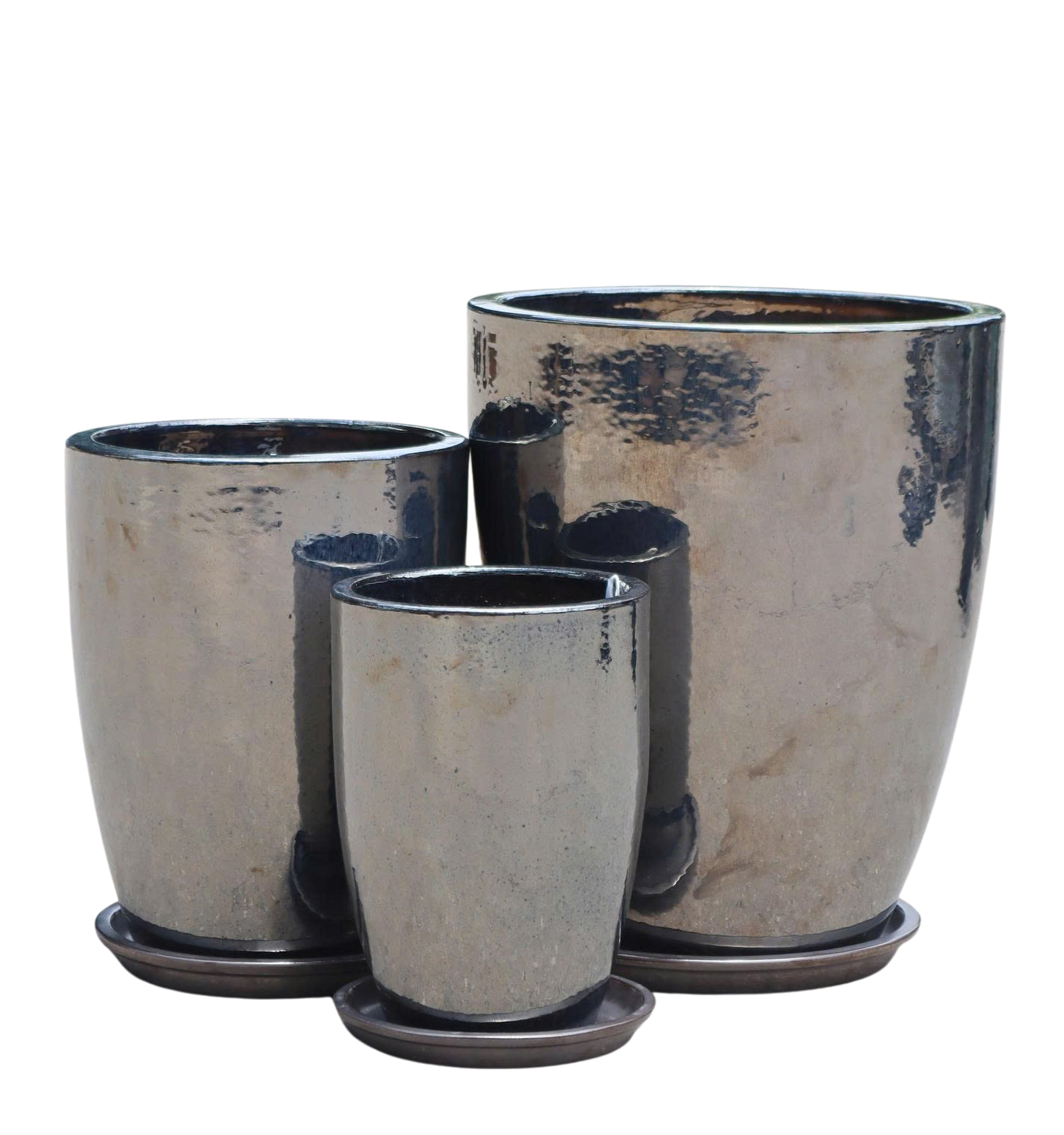 Dodaj elegancji swoim roślinom dzięki zestawowi TOLEDO Metalic – to trzy ręcznie szkliwione ceramiczne donice w metalicznym kolorze. Ich prosta, klasyczna forma w połączeniu z błyszczącym wykończeniem tworzy uniwersalny design, który doskonale sprawdzi się zarówno w nowoczesnych, jak i klasycznych przestrzeniach – w domu, na tarasie czy w ogrodzie.