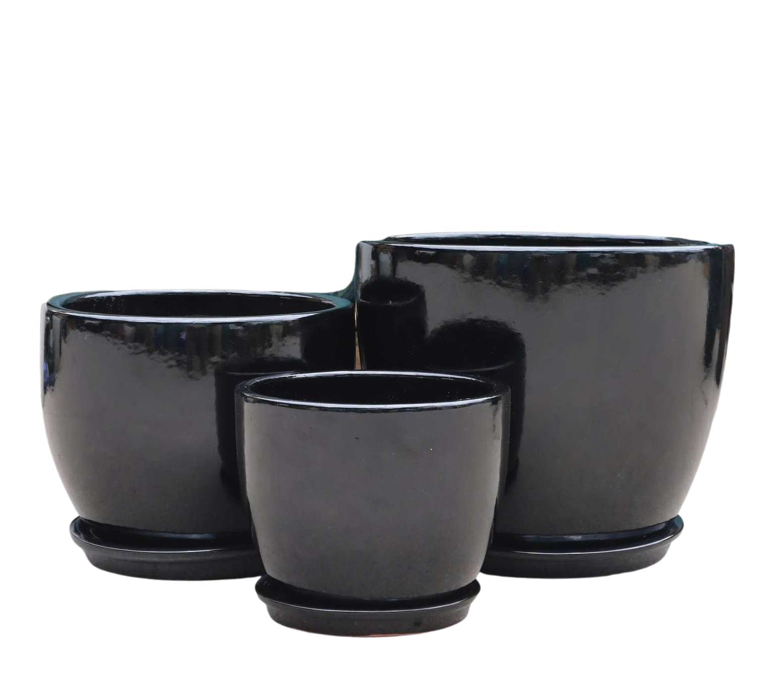 Dodaj elegancji swoim roślinom dzięki zestawowi SOLLER Shiny Black – to trzy ręcznie szkliwione ceramiczne donice w intensywnym czarnym kolorze. Ich prosta, klasyczna forma w połączeniu z błyszczącym wykończeniem tworzy uniwersalny design, który doskonale sprawdzi się zarówno w nowoczesnych, jak i klasycznych przestrzeniach – w domu, na tarasie czy w ogrodzie.