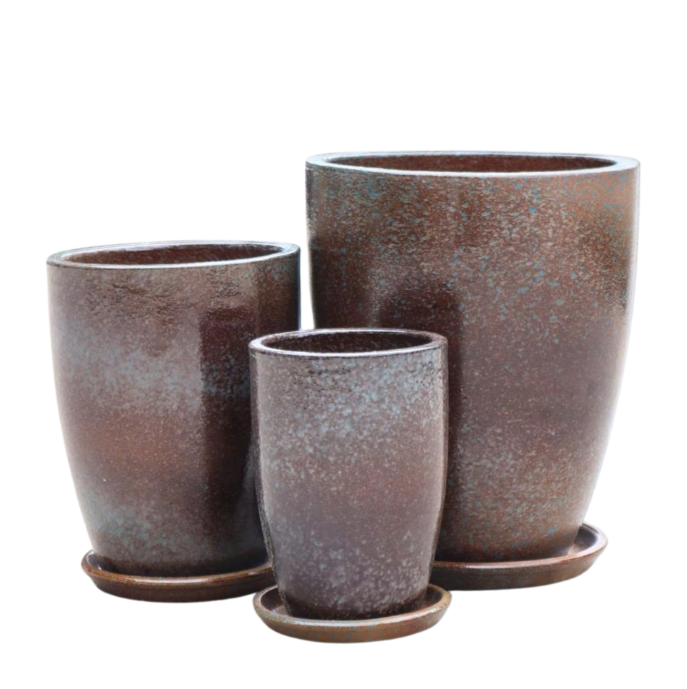 Dodaj elegancji swoim roślinom dzięki zestawowi TOLEDO Gold – to trzy ręcznie szkliwione ceramiczne donice w brązowo-niebieskich odcieniach. Ich prosta, klasyczna forma w połączeniu z błyszczącym wykończeniem tworzy uniwersalny design, który doskonale sprawdzi się zarówno w nowoczesnych, jak i klasycznych przestrzeniach – w domu, na tarasie czy w ogrodzie.